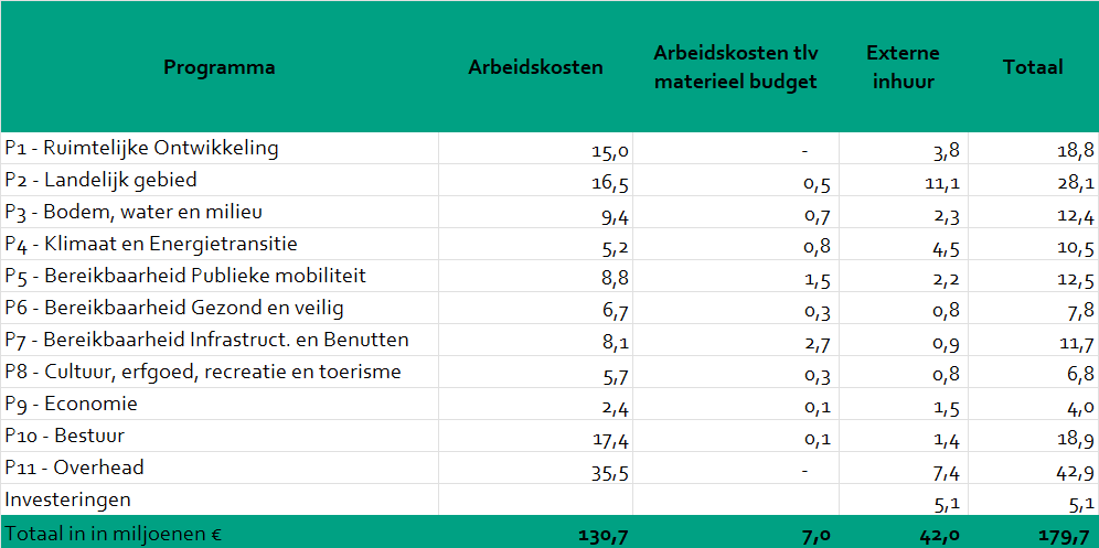 - Loonkosten voor de formatie van de provincie Utrecht zijn voor de begroting 2026 € 130 miljoen; (2025 € 117 miljoen)